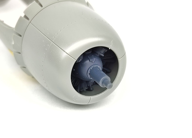 - Le moteur sous capot s’installe sans aucune modification de la maquette. Les échappements et les volets en plastique de la maquette sont à utiliser.